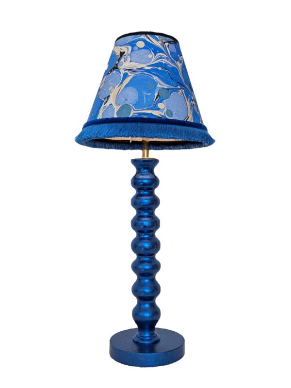 Please note: Price is for the lamp base only. See separate listings for blue marbled lampshade and blue and green marbled lampshade.