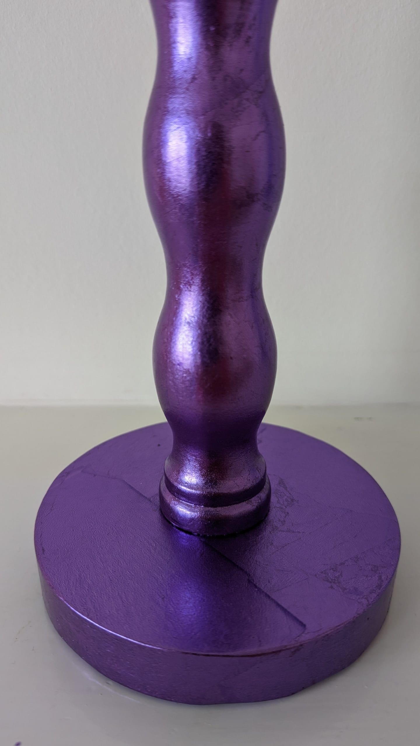 These luxury, sustainable wavy candlesticks have been handmade from reclaimed antique and vintage table legs. They have been gilded with silver leaf which has been carefully applied by hand and varnished for protection. The luxurious metallic finish is a dyed genuine silver leaf which has a beautiful soft sheen and natural variations in colour. Each candle holder is a one-off handcrafted piece.