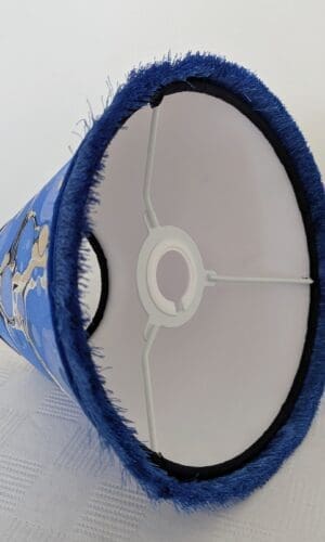 The shade is finished with a silky fringing and a band of luxurious velvet ribbon, adding rich texture and softness to the overall look. These premium materials give the lampshade an elevated, decorative edge—perfect for pairing with our handmade cordless bases, vintage lighting, or your own lamp pieces.