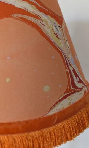 Each lampshade is made from a beautiful piece of original marbled paper hand-painted in our Margate studio and is therefore completely unique. The paper is bonded to a cardboard backing, offering a more sustainable plastic-free alternative to the vinyl commonly used in lampshades. This makes it a more eco-conscious choice without compromising on structure or quality.