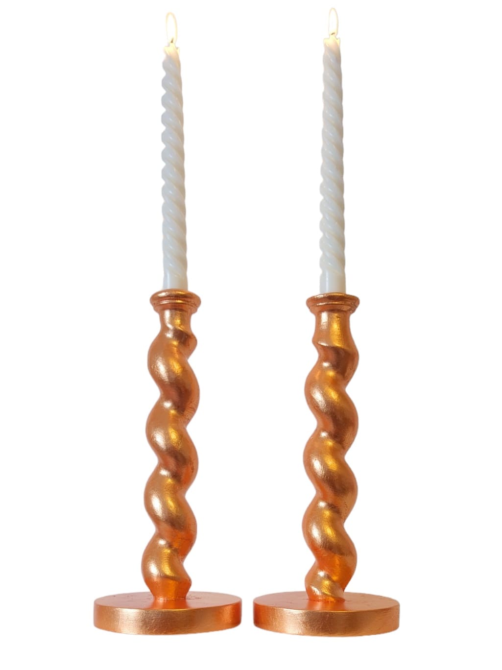 Twisted Peach Candlesticks | Gilded in Peach Silver Leaf