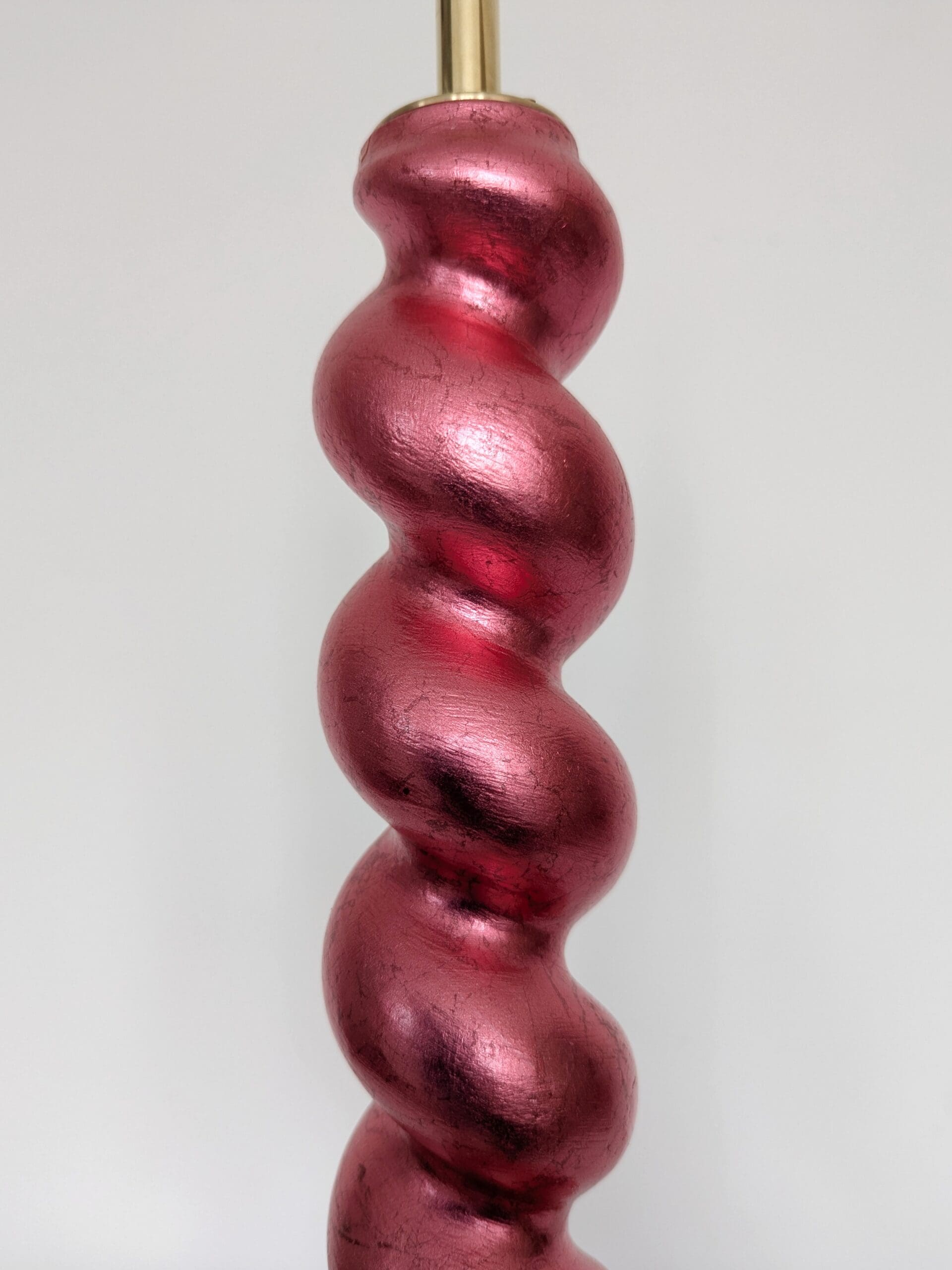 This one-of-a-kind lamp is handmade from a reclaimed vintage bobbin chair leg, giving it a second life while reducing environmental impact. The base has been gilded by hand using genuine mint green dyed silver leaf, then sealed with varnish for a soft, luminous sheen. Natural variations in the silver leaf create a beautiful textured finish.