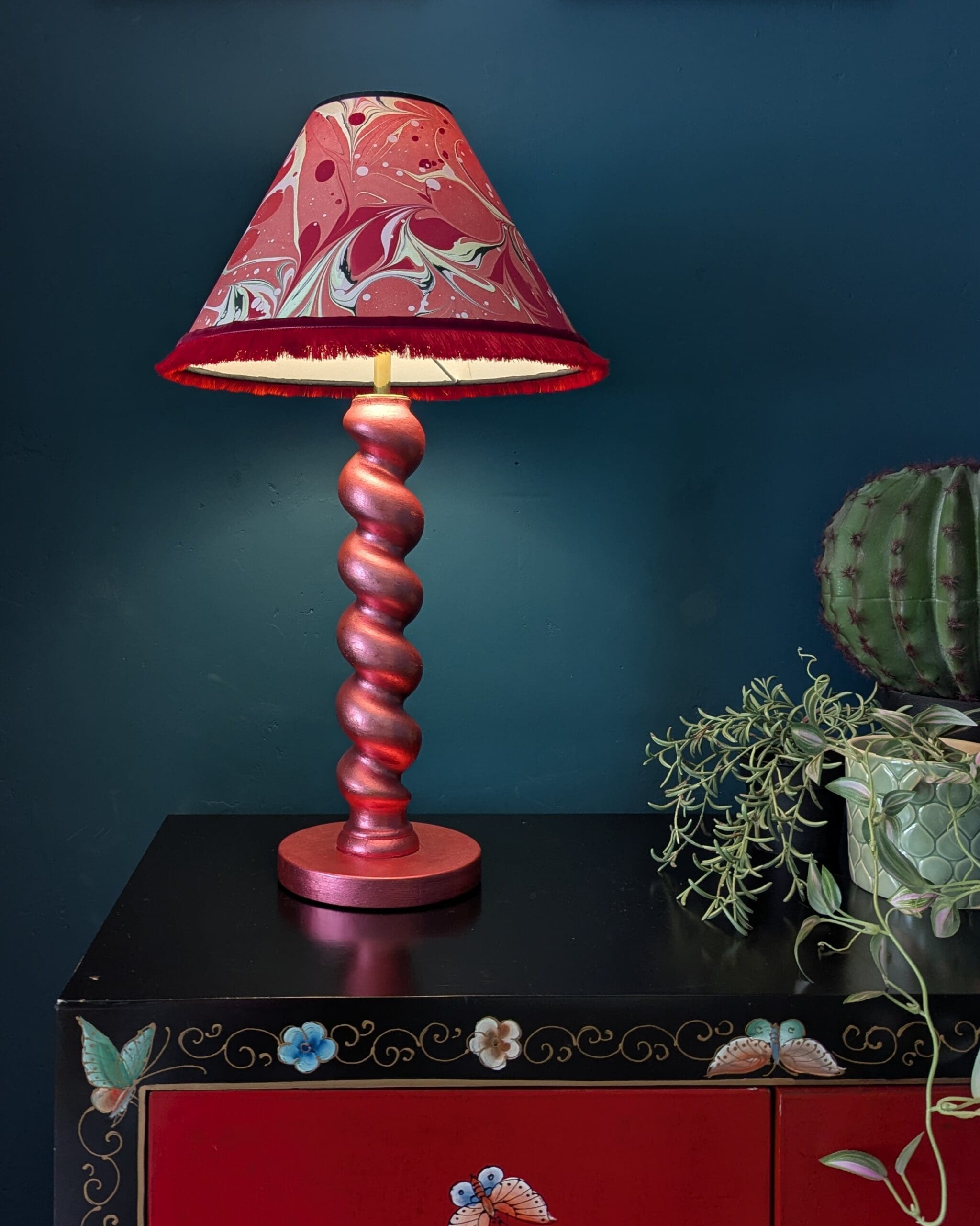 Red Cordless Lamp – Handmade with Mint Silver Leaf & Rechargeable LED Bulb